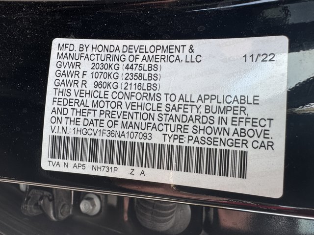 - VIN: 1HGCV1F36NA107093
