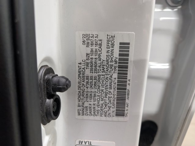 • VIN: 5J6RW2H51NA014714