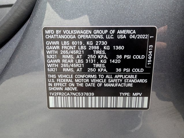 - VIN: 1V2FR2CA7NC537839